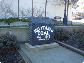 ダウンタウンのウォーターフロントにある石碑。炭鉱が盛んだったことを表している